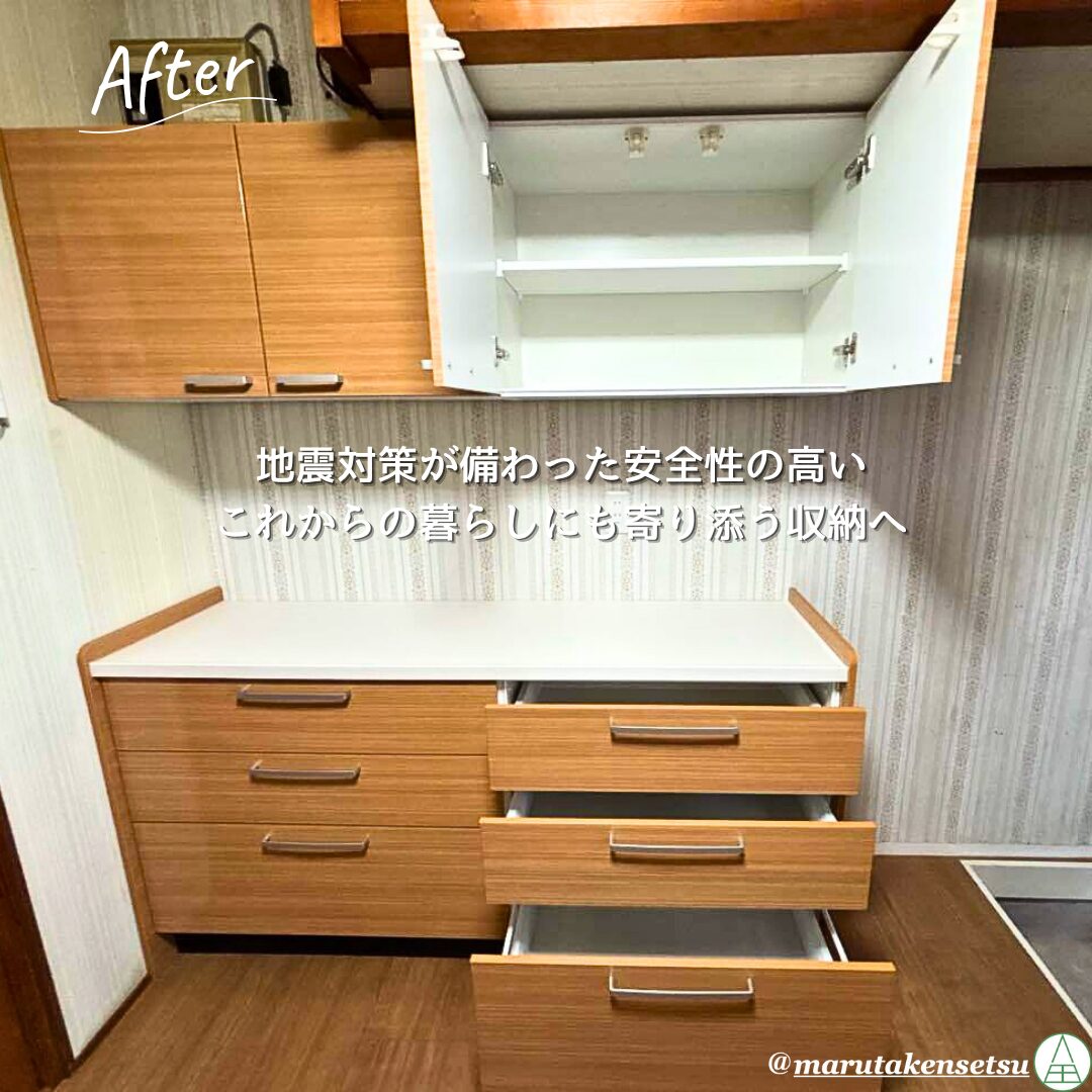 さらに、家族の思い出が詰まった戸棚は、耐震性に優れた安全性の高い収納へと一新。